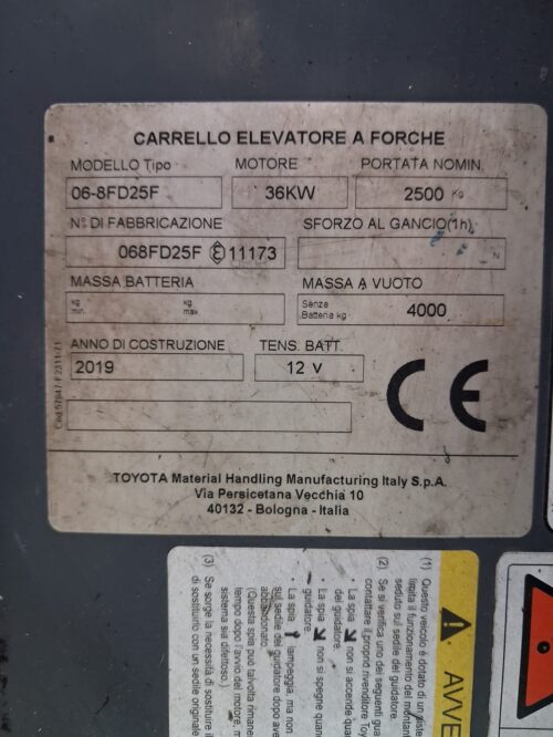 - Diesel Forklift – Toyota 06-8FD25F